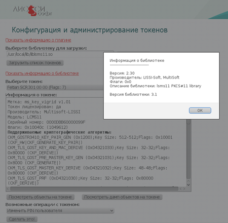 Именно эта библиотека позволяет использовать СКЗИ «MS_KEY K» в продуктах Mozilla с поддержкой российской криптографии, в КриптоПлагине, «ЛИССИ-CSP», «Fox-XCA», OpenSSL через соответствующий engine и др., то есть во всех продуктах, где используется интерфейс PKCS#11.