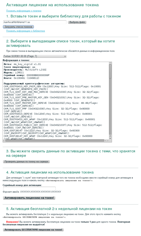 Обе библиотеки доступны для свободного скачивания. СКЗИ «MS_KEY K», подключаемые через эти библиотеки, подлежат лицензированию. Лицензирование осуществляется через веб-сервис: