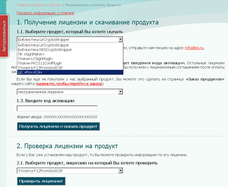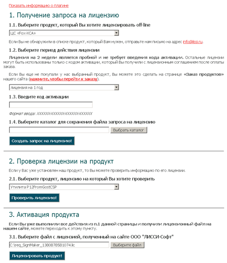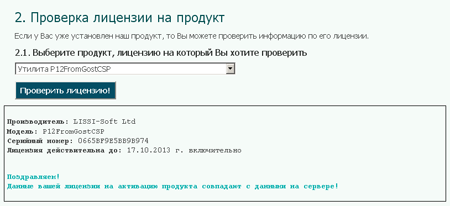 Также веб-сервис предоставляет возможность проверить лицензию продукта ООО «ЛИССИ-Софт» :