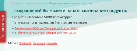 После получения лицензии будет предложено скачать дистрибутив продукта:
