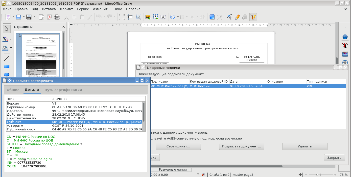 Офисный пакет LibreOffice: электронная подпись ГОСТ Р 34.10-2001/2012 в документах формата PDF