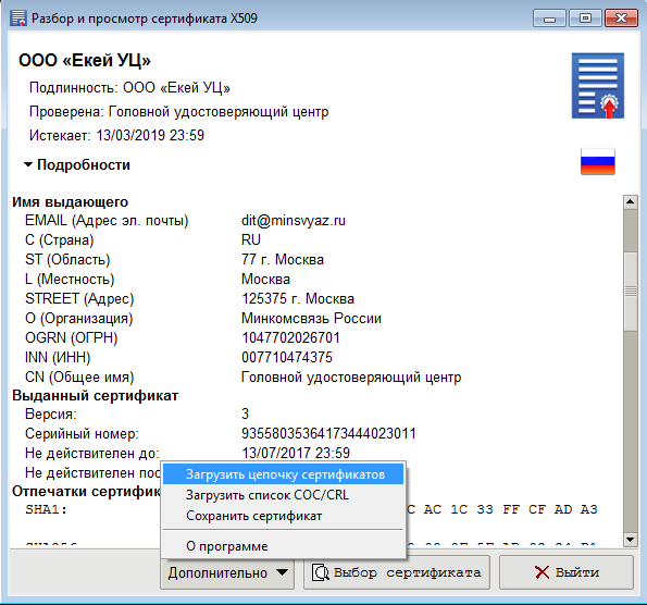 (СОС/CRL). Для просмотра сертификата достаточно его загрузить.