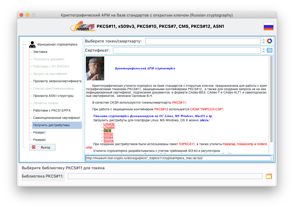 Специалистами ООО «ЛИССИ-Софт» создан криптографический АРМ cryptoarmpkcs на базе стандартов с открытым ключом (PKCS - Public Key Cryptography Standards ):