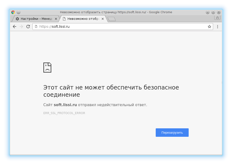 Рис. Доступ по HTTPS с российской криптографией не возможен: отсутствует ее поддержка в