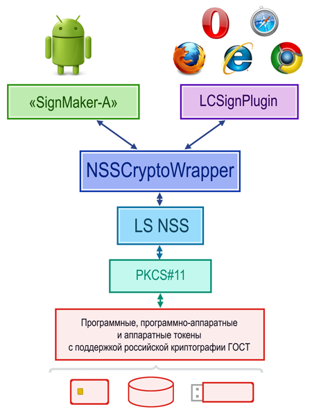 Библиотека NSSCryptoWrapper, созданная на базе библиотеки LSNSS, обеспечивает работу с сертификатами с учетом требований Федерального закона от 6 апреля 2011 г. № 63-ФЗ «Об электронной подписи»и предназначена для использования в системах защищенного документооборота. Это одна из библиотек, которая может использоваться в криптоплагине LCSignPlugin.