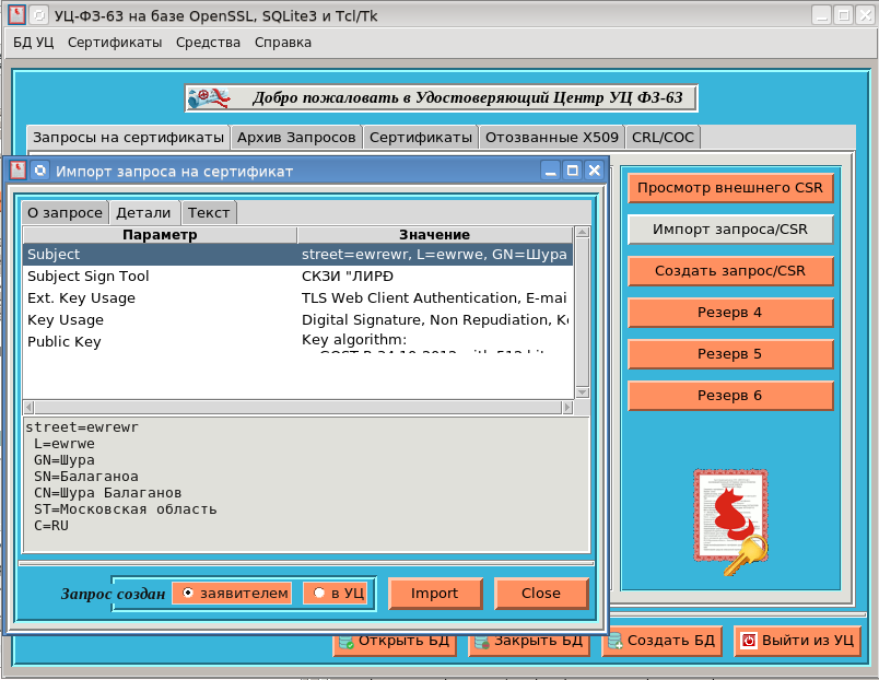 С помощью этой утилиты можно сформировать запрос на сертификат в формате PKCS#10: