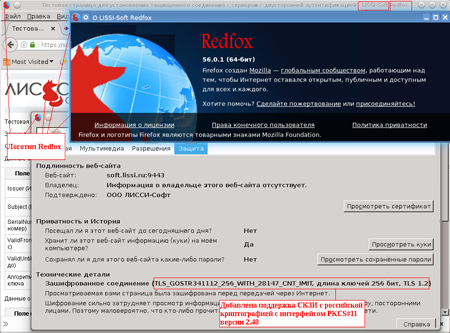 Реализация пакета LS-NSS, обеспечивающего поддержку российских криптографических интерфейсов, и токенов LS11SW2016 и LS11USB2016, позволила добавить поддержку российской криптографии в браузер Mozilla Firefox, почтовый клиент Mozilla Thunderbird и другие проекты. В браузере это реализация HTTPS (TLS) на базе российских шифрсьютов: