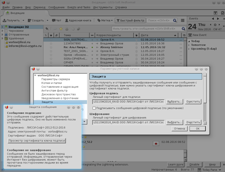 В почтовом клиенте это подписание и шифрование почтовых сообщений: