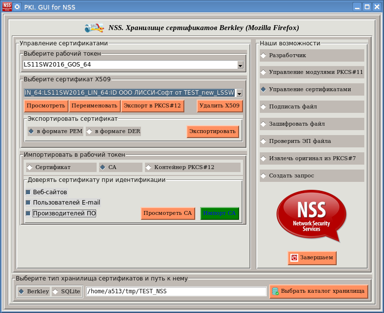По своей функциональной мощности в области криптографии и PKI с NSS может