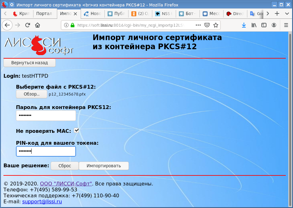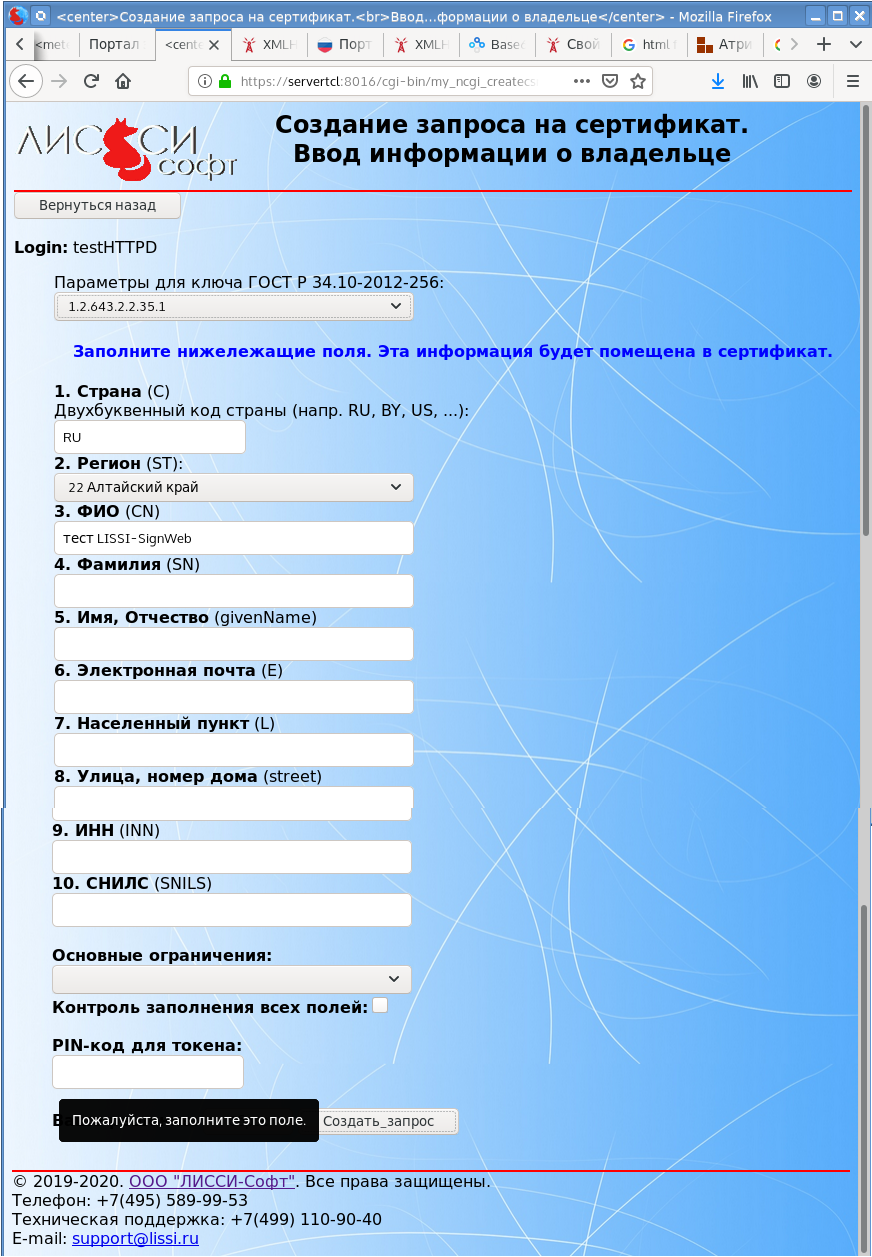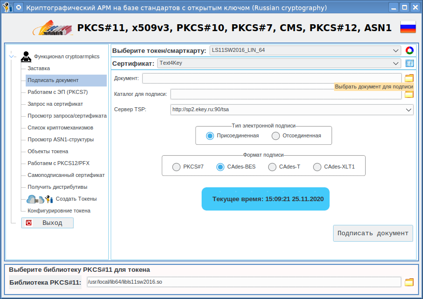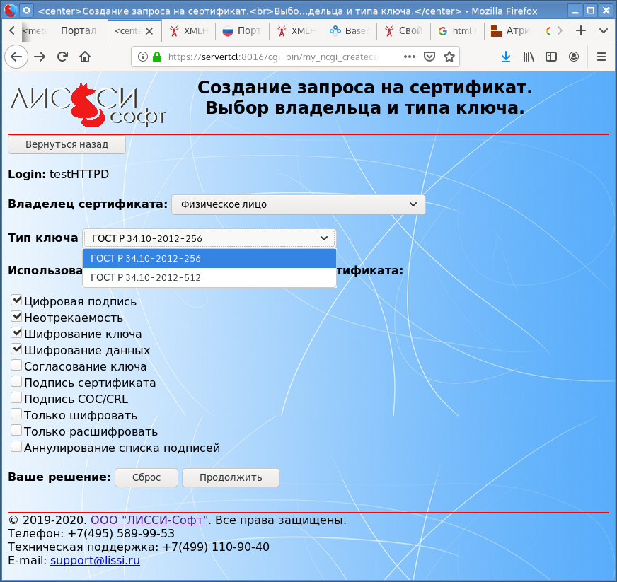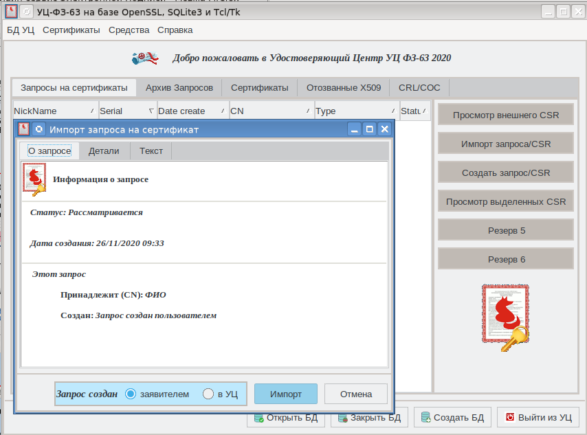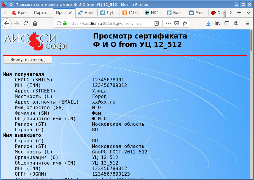 сертификата. Создать тестовый сертификат можно с использованием графической утилиты CAFL63: