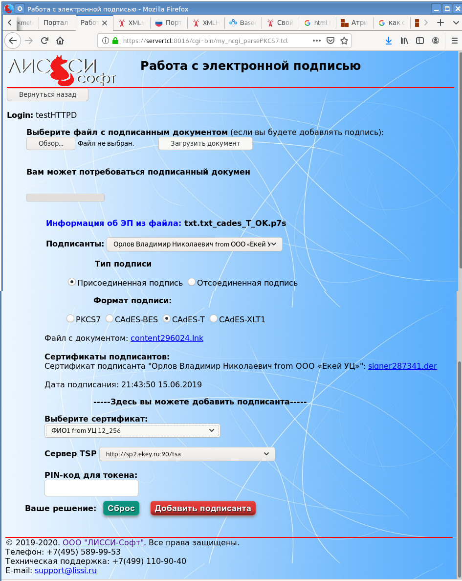 хранящихся в файле.Онлайн-сервис «LISSI-SignWeb» представляет