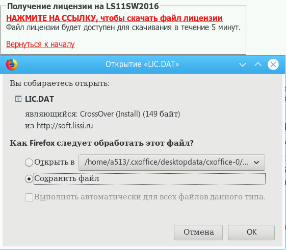 Нажмите кнопку "Загрузить файл запроса" и следуйте получаемым указаниям вплоть до сохранения файли лицензии на своем компьютере:
