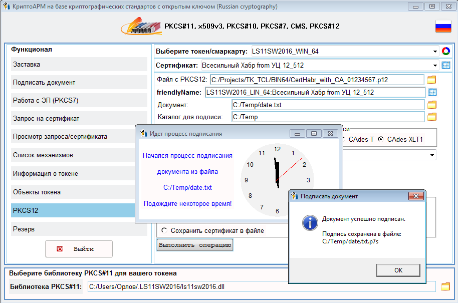 Утилиты создания электронной подписи на базе контейнера PKCS#12