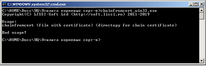 chainfromcert_xxxx.exe <путь к файлу сертификата> <путь к каталогу, в который будут сохранены корневые сертификаты>