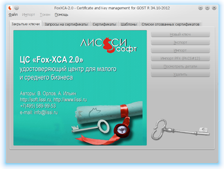 Для выпуска серверных и клиентских сертификатов удобно использовать графическую утилиту foxxca, также входящую в состав СКЗИ «ЛИРССЛ-CSP»: