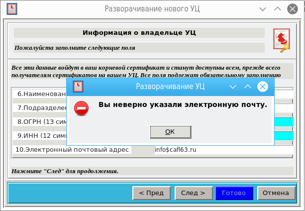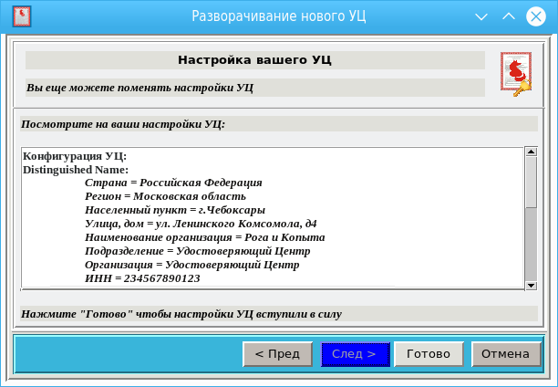 После заполнения полей информацией о владельце УЦ будет предложено определиться с системными настройками УЦ: