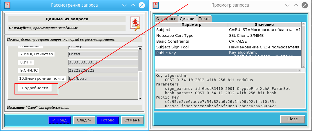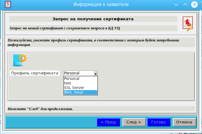 Процедура выпуска сертификата пункт меню «Выпустить сертификат») мало отличается от процедуры создания заявки :