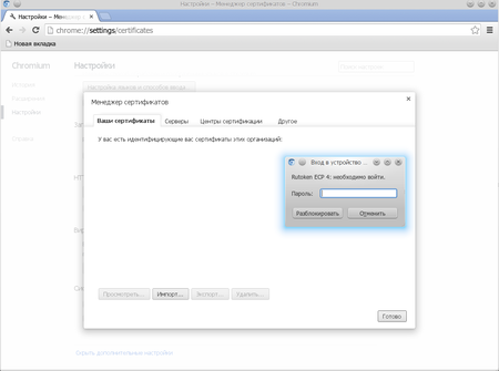 (например, Рутокен ECP) с поддержкой стандарта PKCS#11 и дополнения к нему -