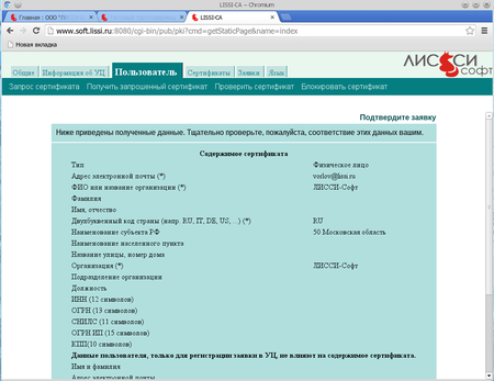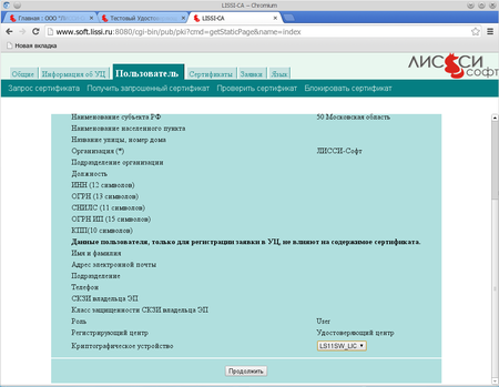- Создавать запросы на сертификат, используя либо плагин LCSignPlugin либо встроенные механизмы;