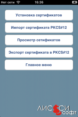 После нажатия кнопки «Запрос на сертификат» в главном меню вы попадаете в меню