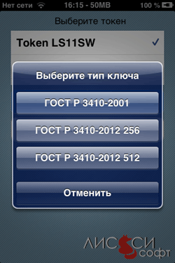 - программного токена LS11SW, имеющего интерфейс PKCS#11 v. 2.30;
